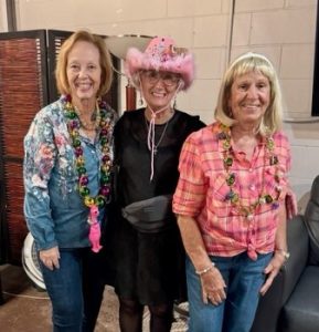 Nancy Catudal was July’s Dicey Dolls’ host at the Club’s parlor, and she always puts a clever twist on our night of fun. She asked that we come dressed as they dressed in our favorite decade. As you can see, the 1950’ were represented the most with Nancy as Lucille Ball (I Love Lucy) and Shirley as a bobby-sock high schooler. Marlene J’s costume paid homage to TV’s love of cowboy shows in the 1950s (maybe she was Calamity Jane). Cheryl was our resident hippie and Marlene “2” decked out for the 1980s. Supposedly Cindy was dressed as a “good Catholic girl” and that could be any decade. Of course, the group played bunco and the winners were Cindy, Shirley and Jackie. I was out of town and couldn’t attend. I missed a fun time!